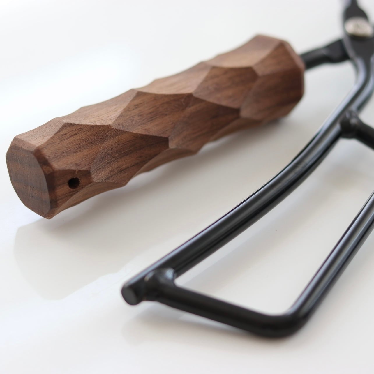 ウォールナットで名栗加工のカスタムグリップの薪ばさみを製作しました。