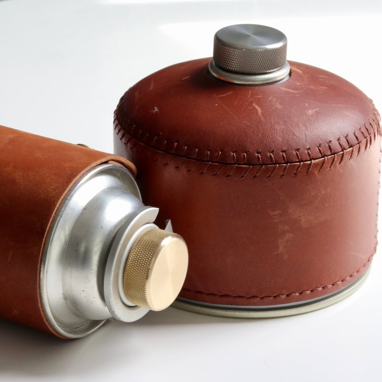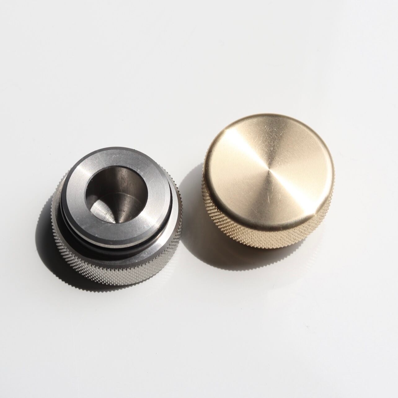 こちらは真鍮とステンレス削り出しのCB缶やOD缶に共通で取付けが可能なガス缶キャップとなります。
