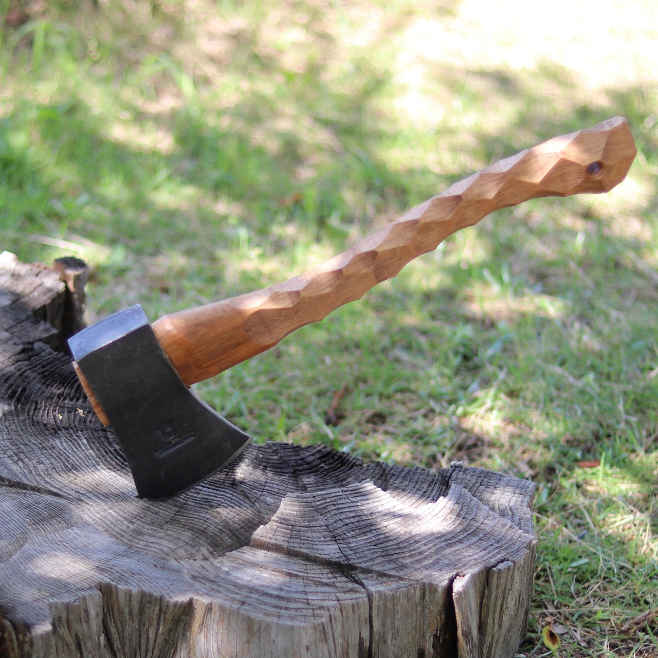 手に馴染みやすい柄の形状で、枝切りや薪作り、暖炉の着火用薪作りに適してます。