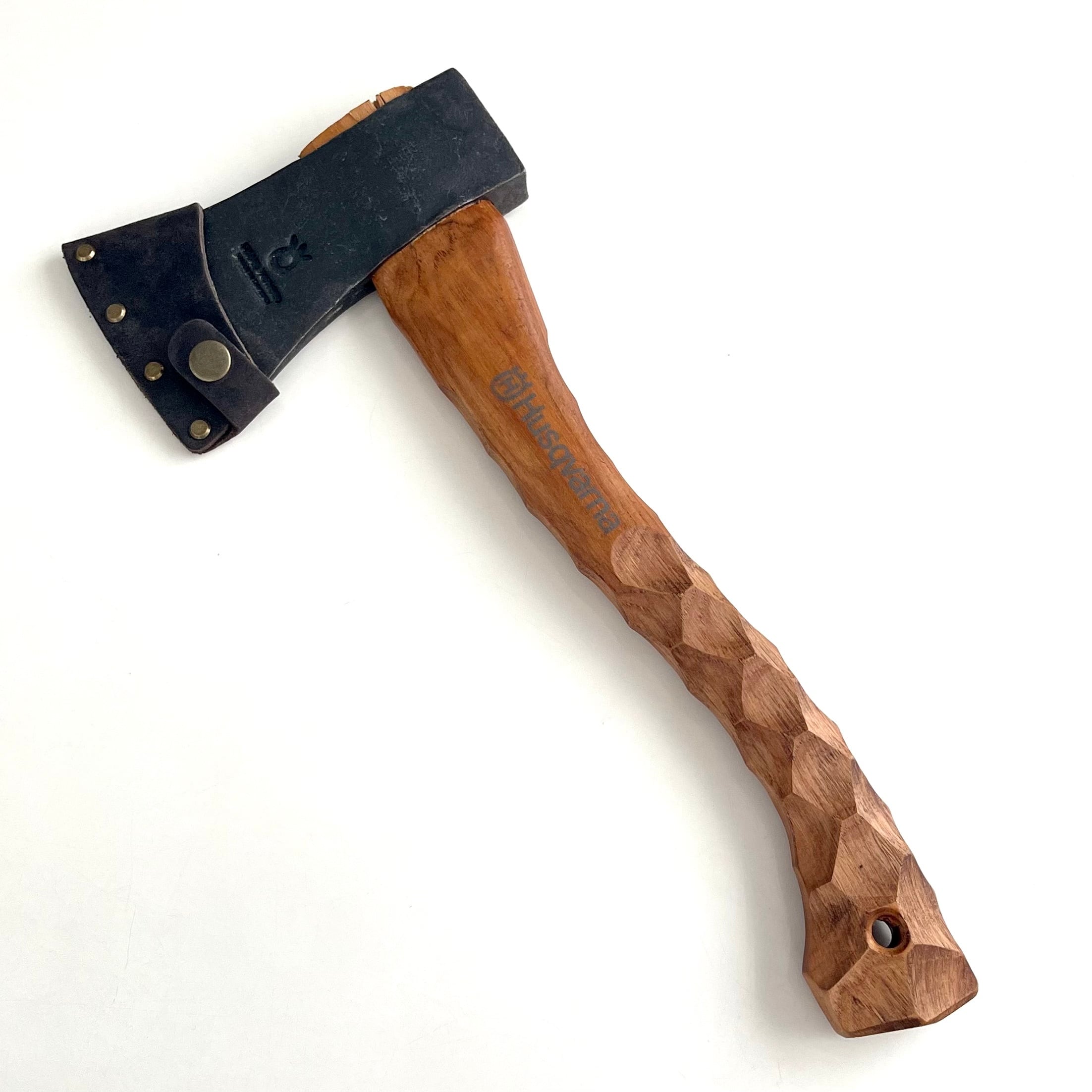 新品のハスクバーナ38cmの手斧に名栗加工を施しヴィンテージ色に仕上げたハンドメイドの斧となります。