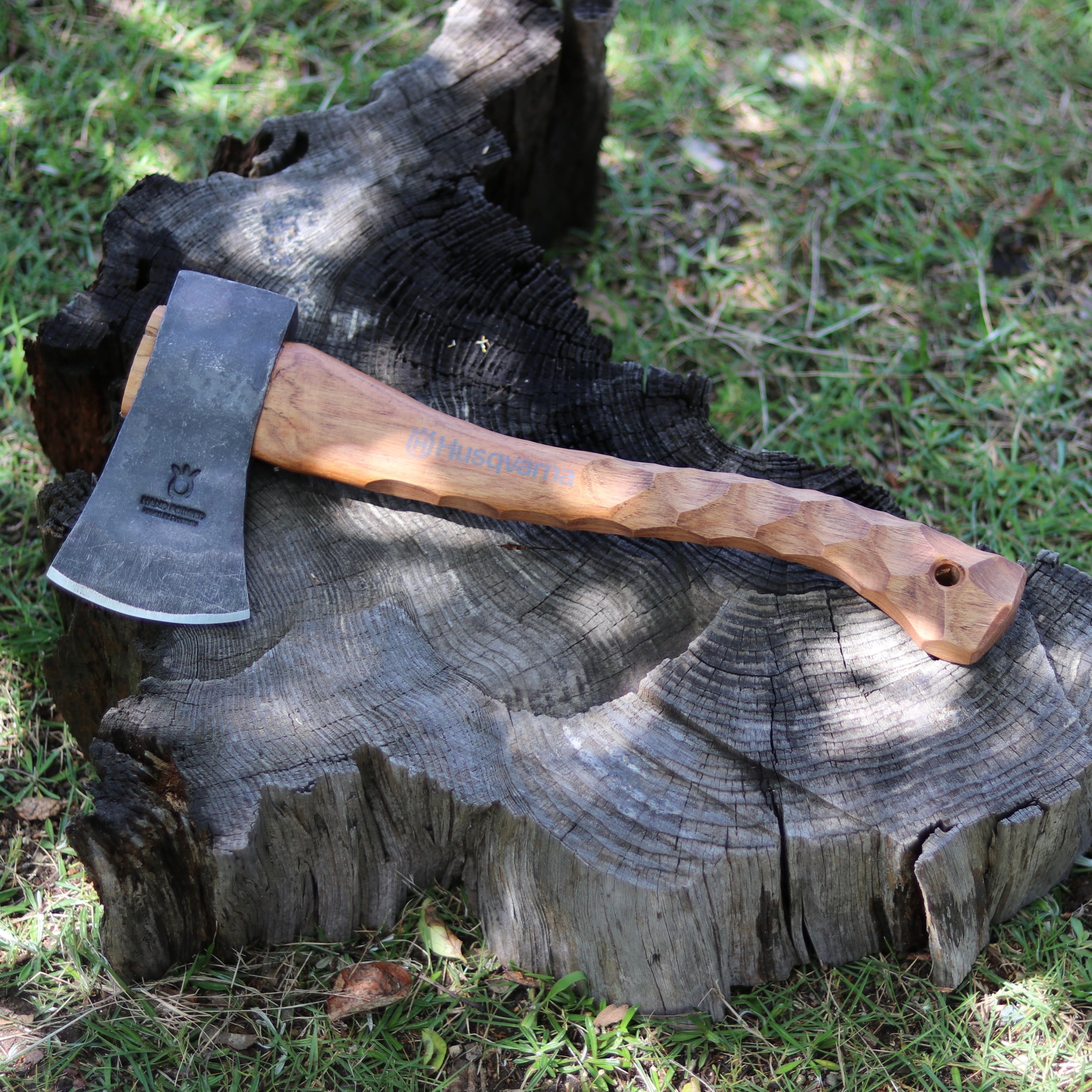 ハスクバーナ創業当時のロゴが刃に刻印されているのがクラフトマンにより作られた斧の証です。