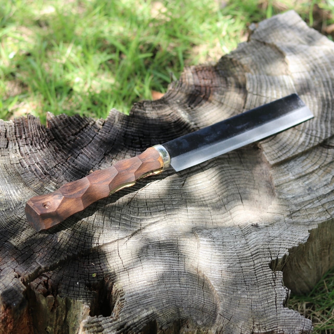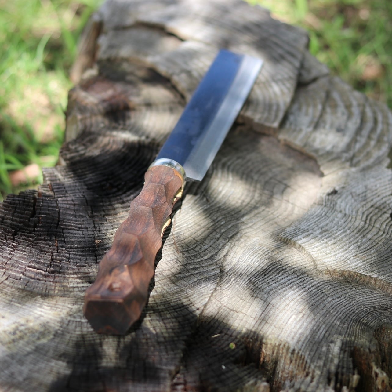 新品の165mmのなたに名栗加工を施しヴィンテージ色に仕上げたハンドメイドの鉈となります。