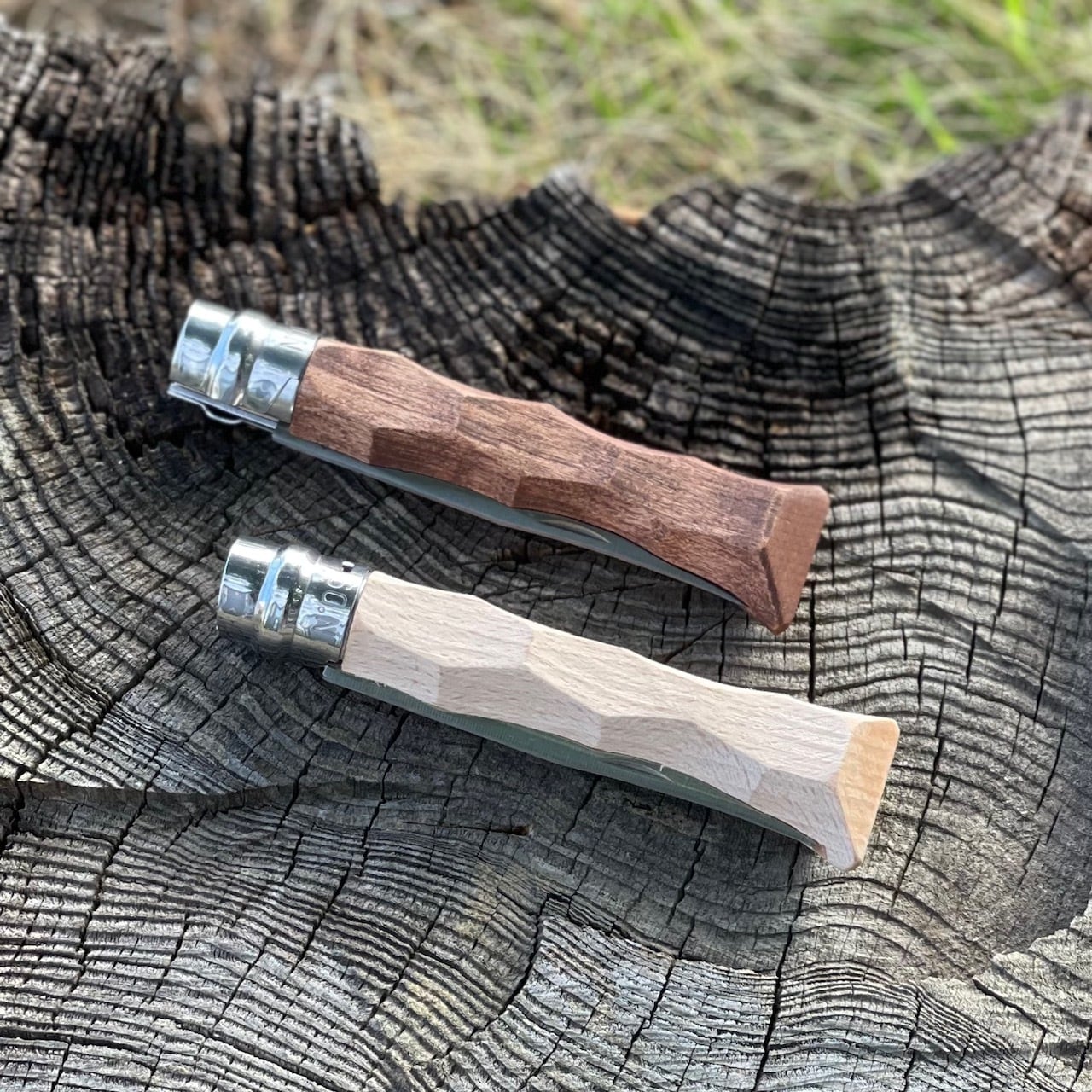 オピネルナイフ No.9 ステンレスに名栗加工を施したカスタムグリップを製作しました。