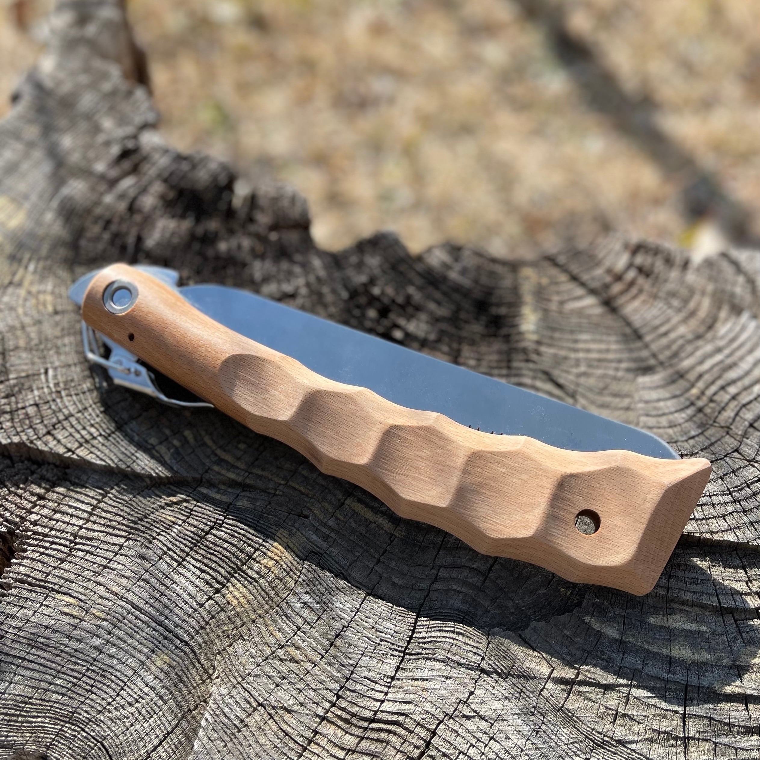 オピネルノコギリ No.18 に名栗加工を施したカスタムグリップを製作しました。